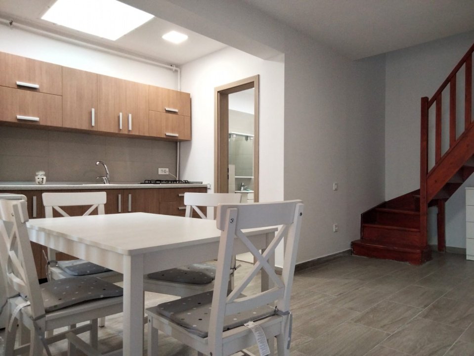 Kronhouse Real Estate va propune spre inchiriere un studio, in zona Liceului Saguna, situata la parter si mansarda,(exista scara interioara), de structura semidecomandata in suprafata de 42mp. Acesta este mobilat si utilat modern. In apropiere gasim Biserica Neagra, Prima Scoala Romaneasca, magazine, restaurante, scoli, gradinite, etc. Imobilul este ideal pentru un cuplu tanar sau o persoana singura. Studioul se potriveste pentru cine doreste sa locuiasca in centrul orasului. Nu sunt acceptate animale de companie si nu se accepta sa se fumeze in garsoniera. Conditii pentru a putea inchiria: o luna de chirie in avans, o garantie si comisionul agentiei de 50% din prima chirie. Perioada minima de inchiriat este de 12 luni. Atractii turistice: Piata Sfatului, Biserica Neagra, Muzee, Centrul Cultural Reduta, Restaurante.