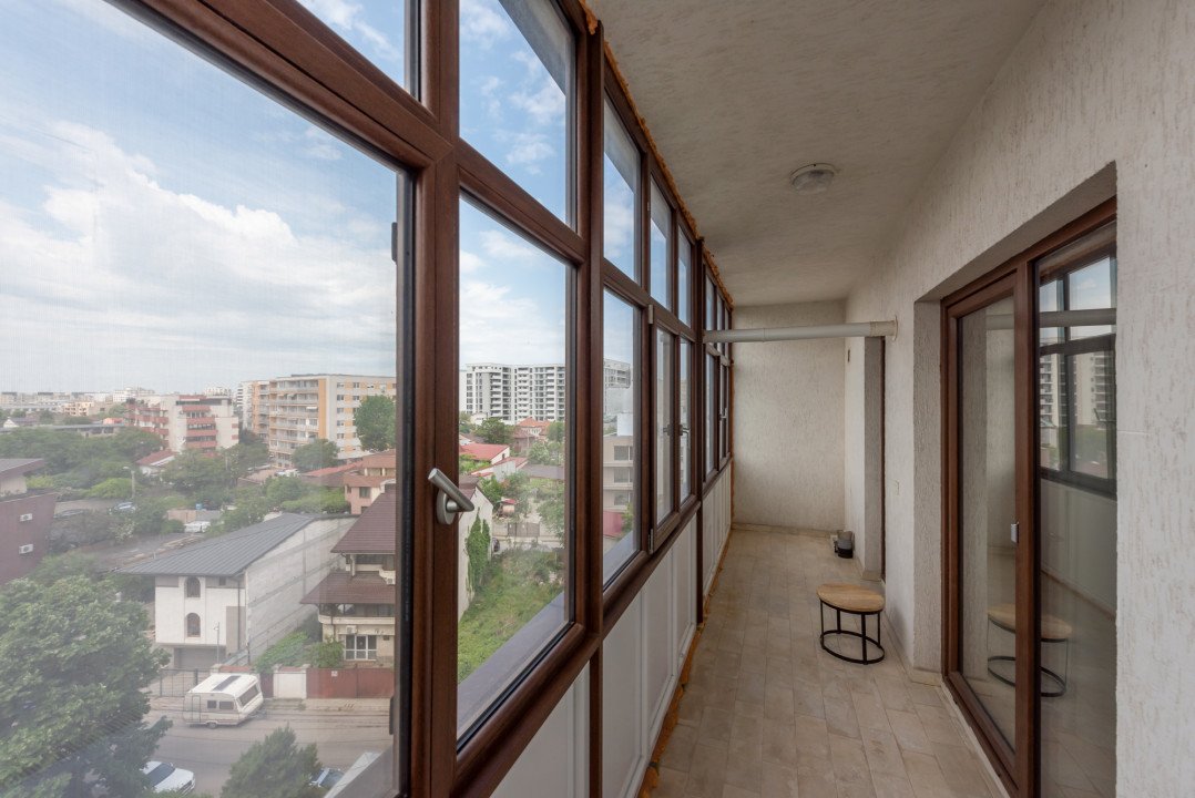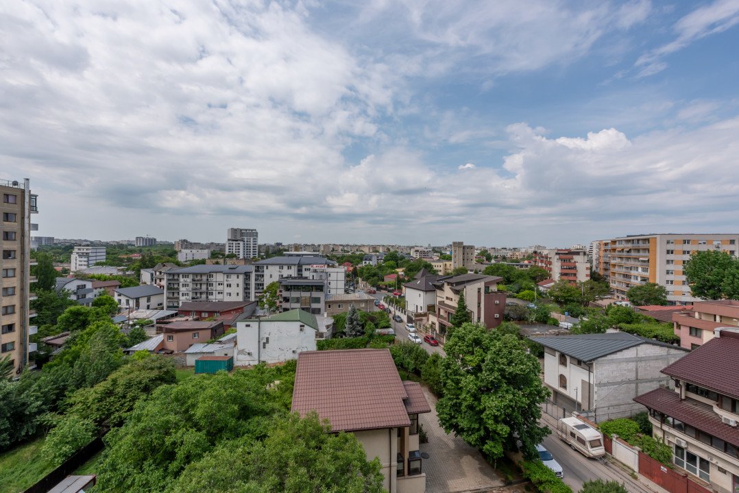 Studio-ul este situat la etajul 6/10 si are o suprafata generoasa de 57,51 mp, din care 48,7mp sunt utili iar terasa in suprafata de 8,81 mp a fost inchisa recent cu ferestre Pvc cu geam termopan. Vederea este libera, neobturata, spre zona de case.