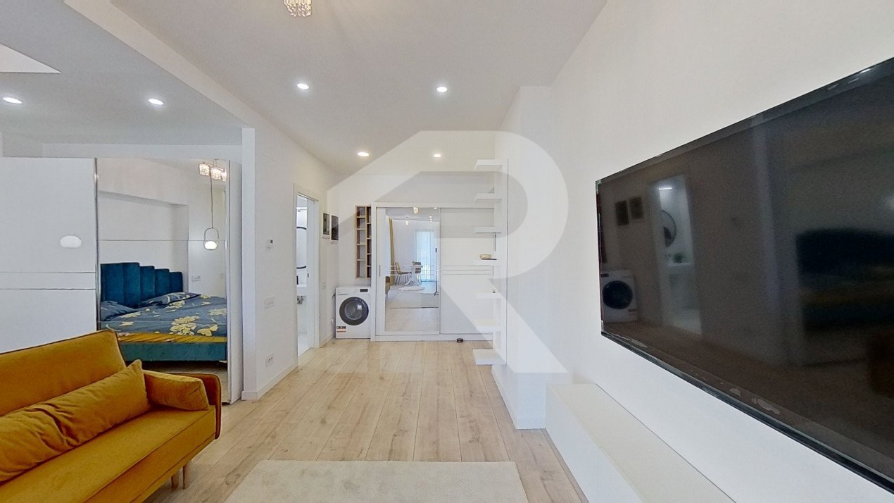 Tehnologie Modernă: Dotată cu un TV Samsung Smart de 139cm și electrocasnice de ultimă generație, inclusiv plită cu inducție și mașină de spălat vase și rufe.