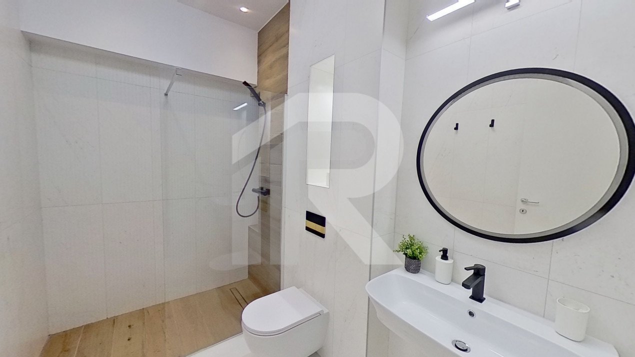 Finisaje Refined: Trăiți înconjurat de lux cu geamuri de înaltă calitate pentru izolare fonică și termică și finisaje elegante Porcelanosa în baie.