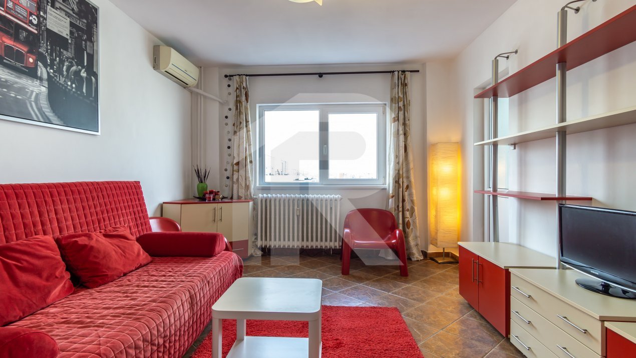 Va propun spre inchiriere o garsoniera decomandata, renovata recent, complet mobilata si utilata in zona 1 Mai - Bdul Banu Manta 18. Imobilul din 1986 este reabilitat termic si are supraveghere video.
