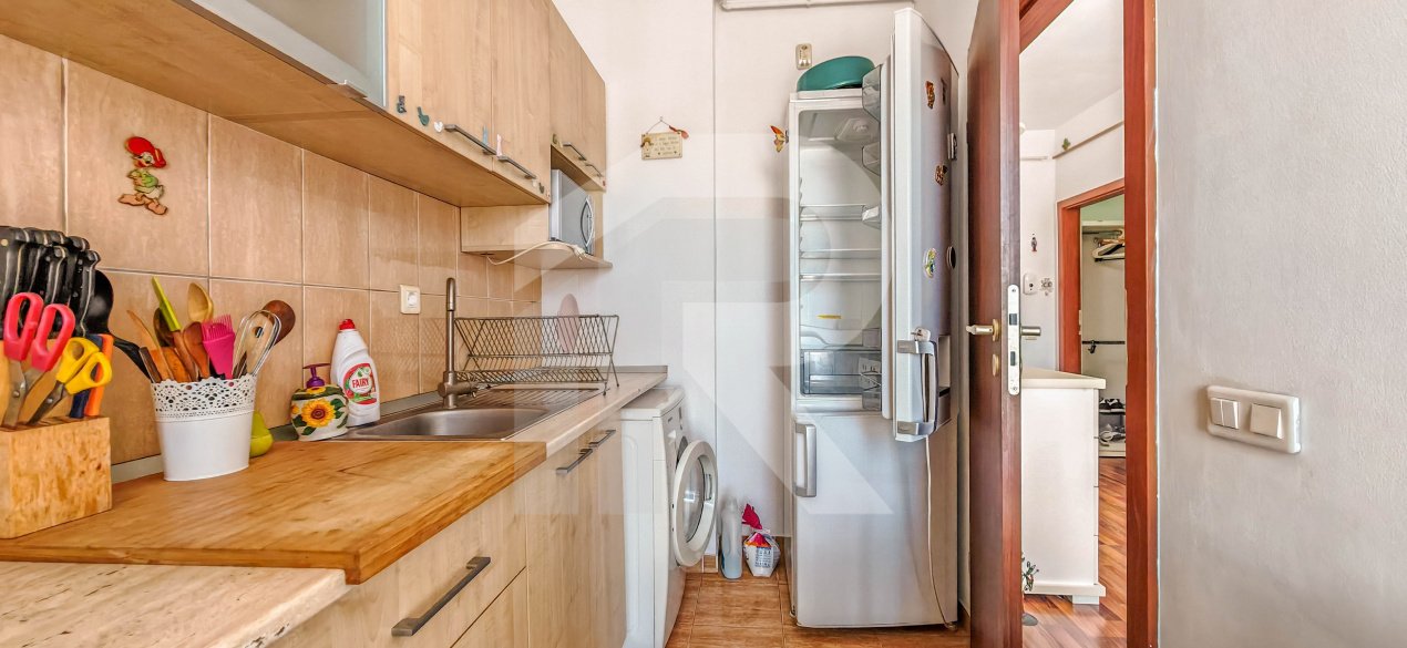 • Bucătărie separată, complet utilată (aragaz, hotă, frigider)