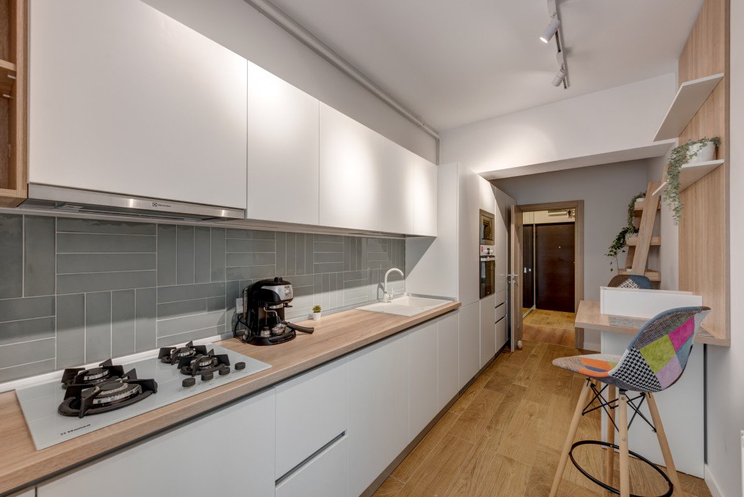 Bucatariaa are o zona de luat masa pentru 2 persoane.