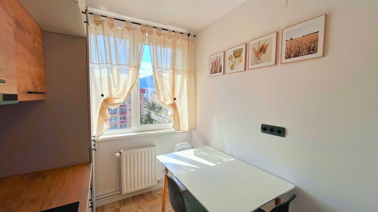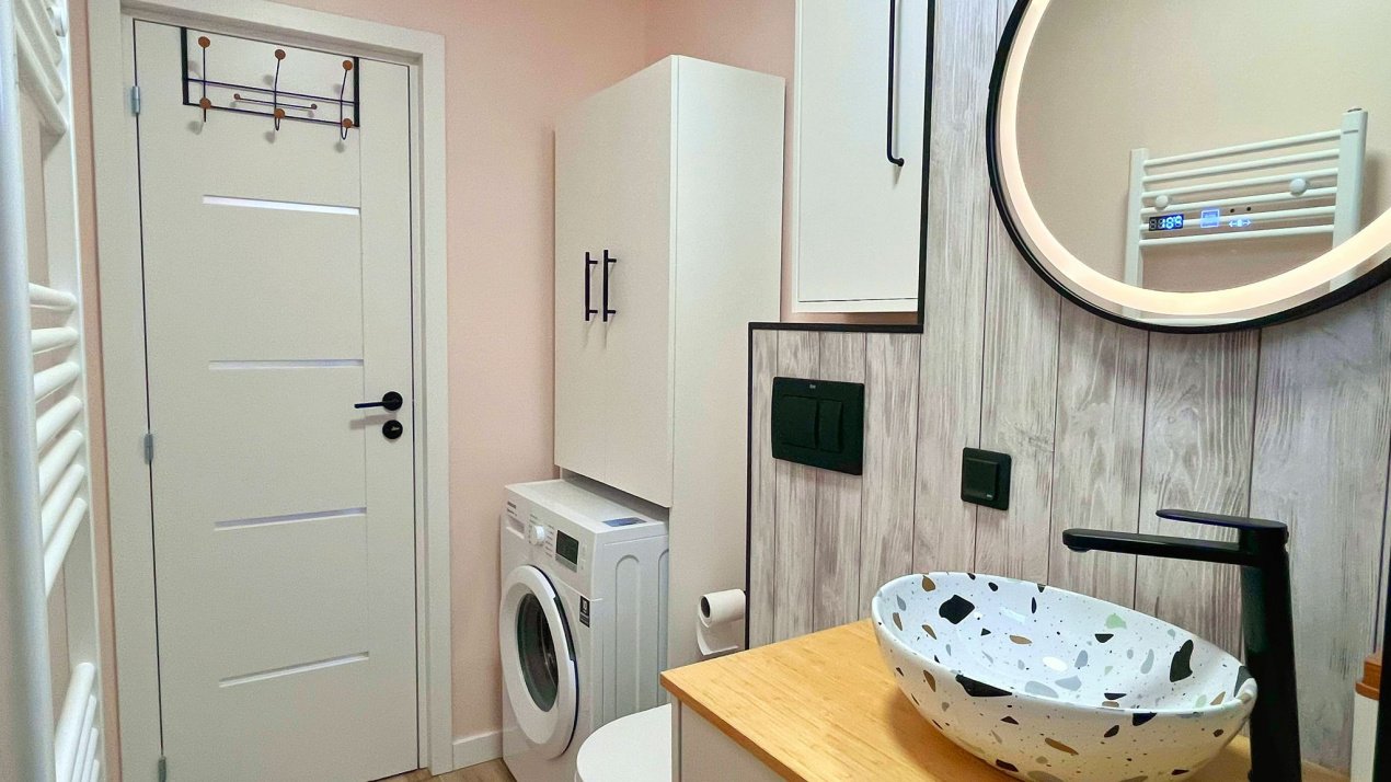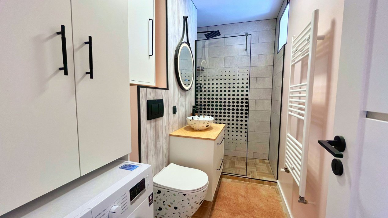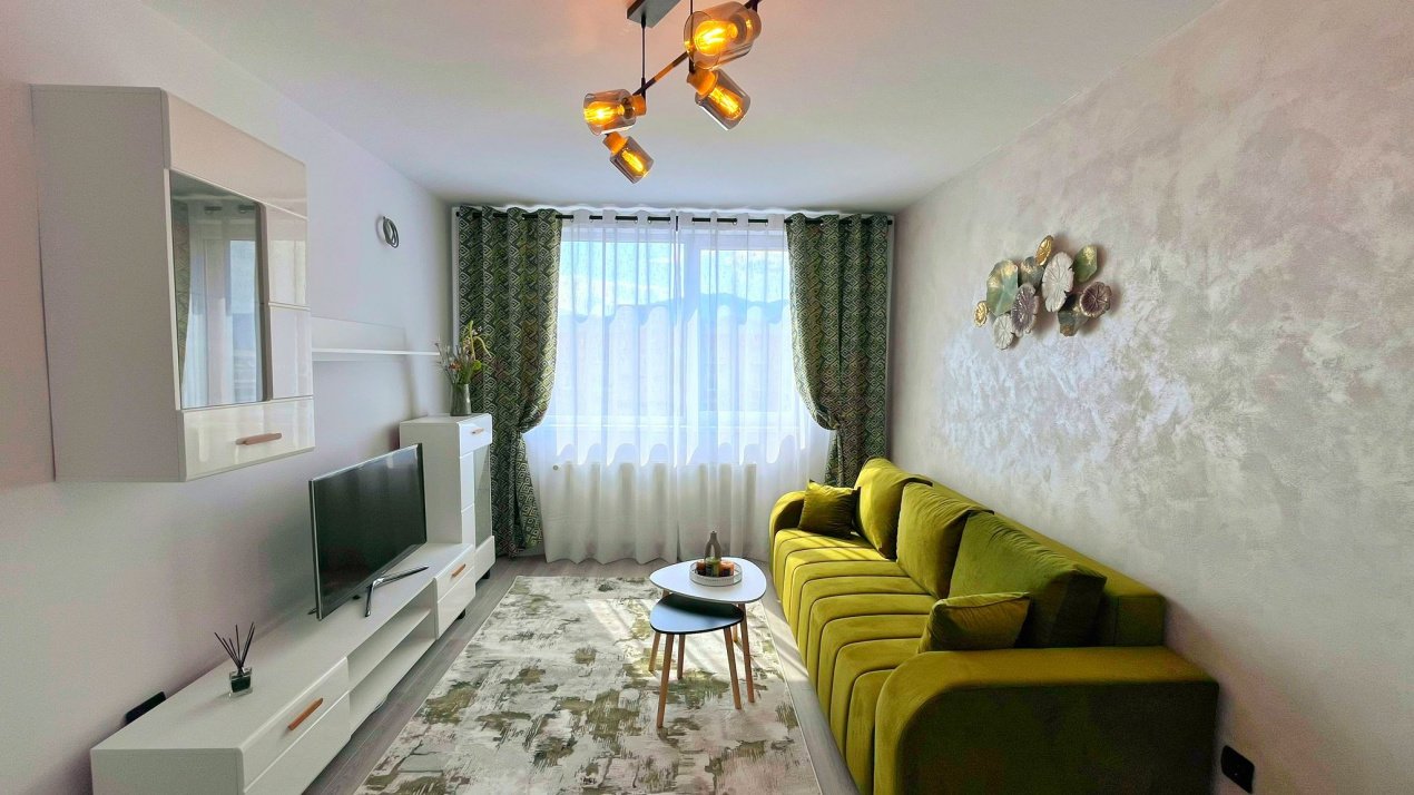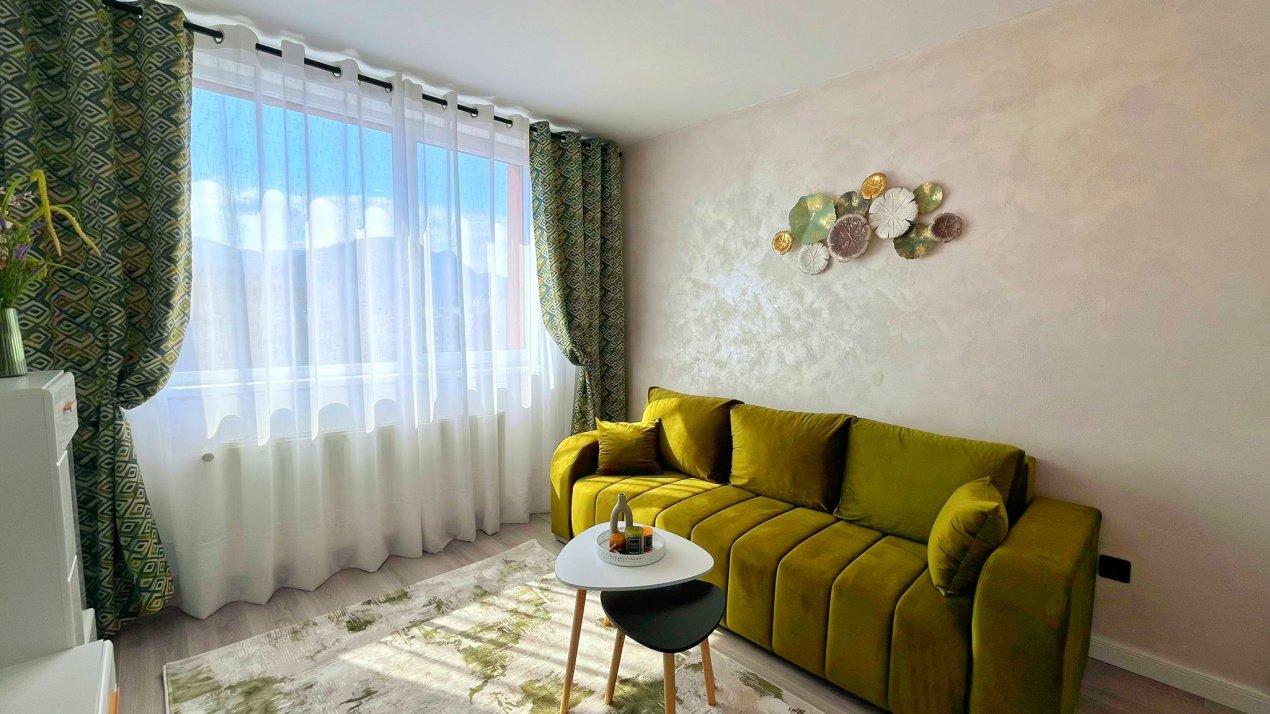 Proprietatea se remarca prin designul modern si atentia la detalii, fiind amenajata intr-un stil cochet, care imbina armonios confortul cu eleganta. Compartimentarea este practica si echilibrata, oferind un spatiu primitor, luminos si functional, ideal pentru un cuplu sau pentru o persoana activa.