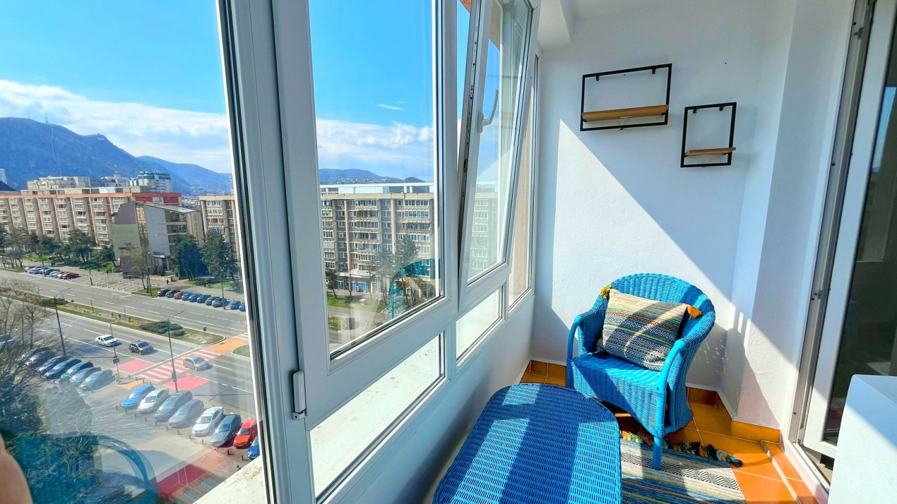 Unul dintre marile avantaje ale apartamentului este privelistea superba catre Tampa, ce poate fi admirata zilnic si care ofera un plus de relaxare si farmec locuintei. Orientarea sudica asigura lumina naturala pe tot parcursul zilei, creand o atmosfera calda si placuta.