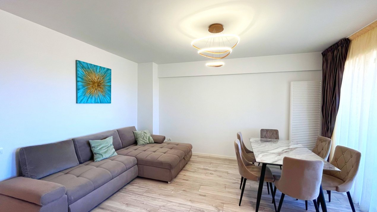 Cu o suprafață utilă de 62 mp, apartamentul este amplasat la etajul 5 din 10 într-un bloc nou construit, beneficiind de lumină naturală din plin și de o compartimentare eficientă, gândită pentru confortul locatarilor.