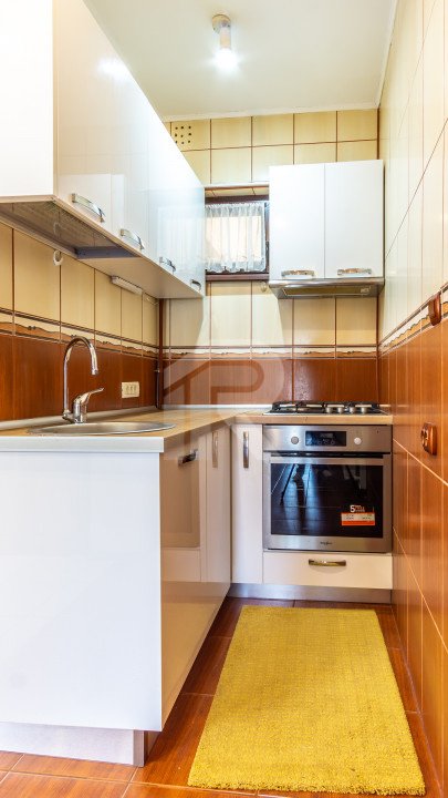 Locuinta se afla la etajul 1 si este complet mobilata si utilata, fiind dotata cu centrala termica pe gaze Ferroli, aer conditionat Whirlpool, combina frigorifica Beko, cuptor electric Whirlpool, plita pe gaze Whirlpool si hota cu ventilatie exterioara, masina de spalat rufe Indesit, tv tip LCD Samsung 108 cm diagonala.