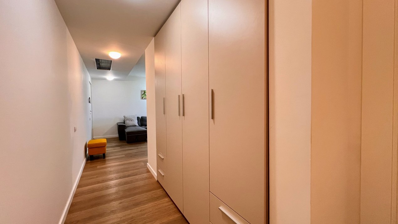 Zona de living este organizată funcțional și primitoare, fiind mobilată cu două canapele comode, dintre care una de dimensiuni generoase, o comodă destinată televizorului Smart TV, spații suplimentare de depozitare și o măsuță de cafea. Întregul spațiu este completat de accente decorative armonios alese, care contribuie la crearea unei atmosfere plăcute și relaxante.