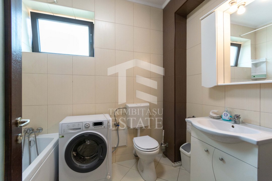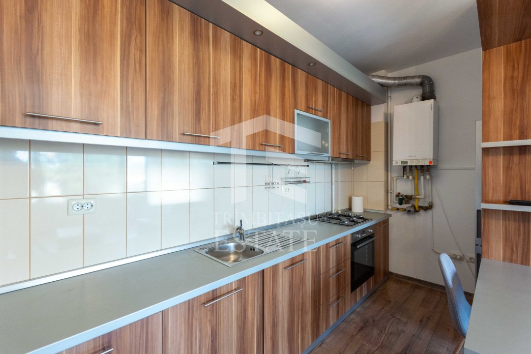 Si e mobilat. Si e utilat (daca nu aveti dvs. se cumpara canapea si televizor). Si e dotat! Evident, are centrala termica proprie! Si personala. Masina de spalat haine, aer conditionat, geam la baie, balcon frumos.