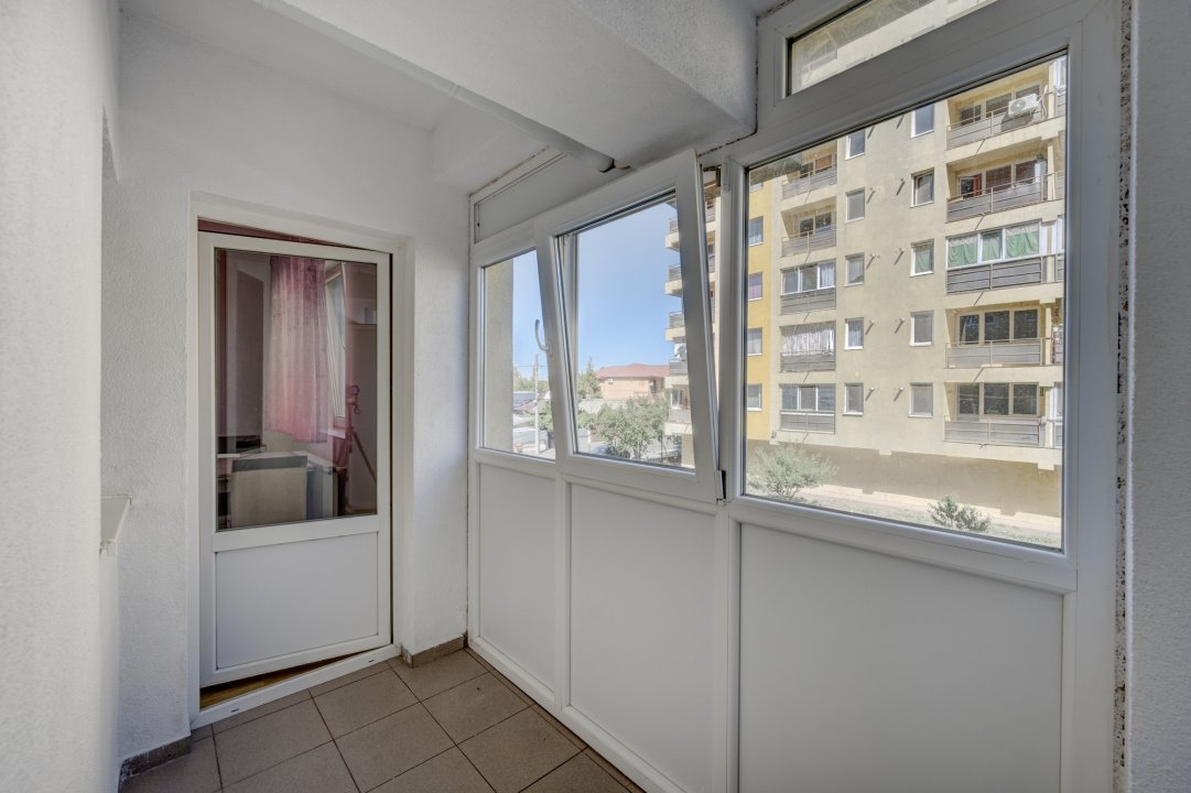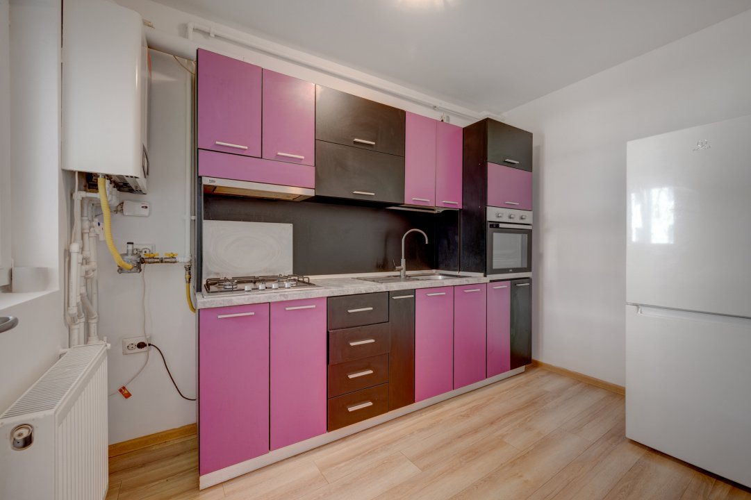 Bucataria este mobilata si utilata cu plita, cuptor, hota, frigider. Balconul este inchis si din balcon se face accesul catre o debara.