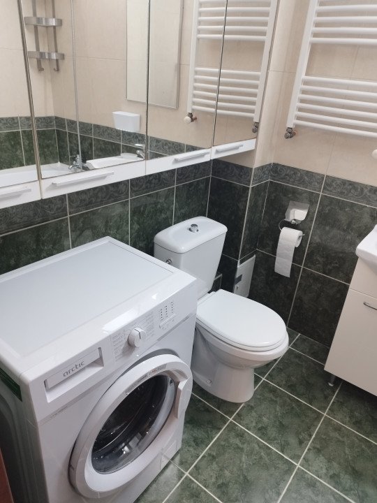 - Baie spațioasă, echipată inclusiv cu mașină de spălat rufe