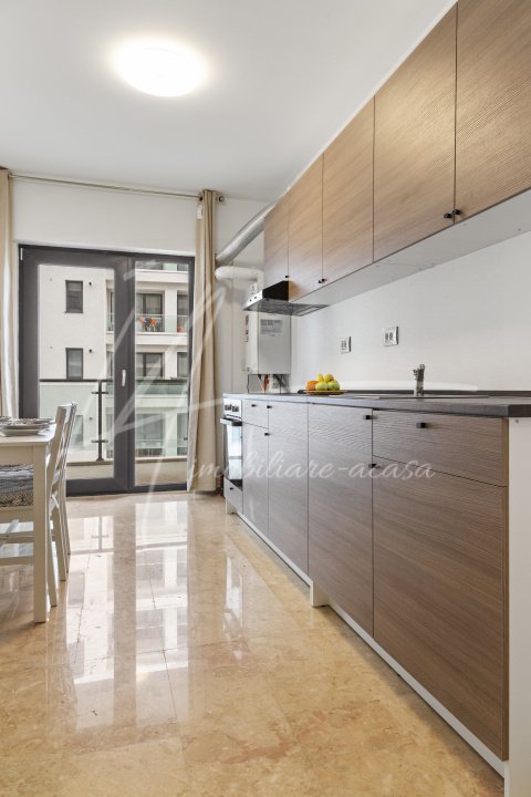 Apartamentul se afla la etajul 4 din 11, este utilat si mobilat complet si dispune de parcare subterana.