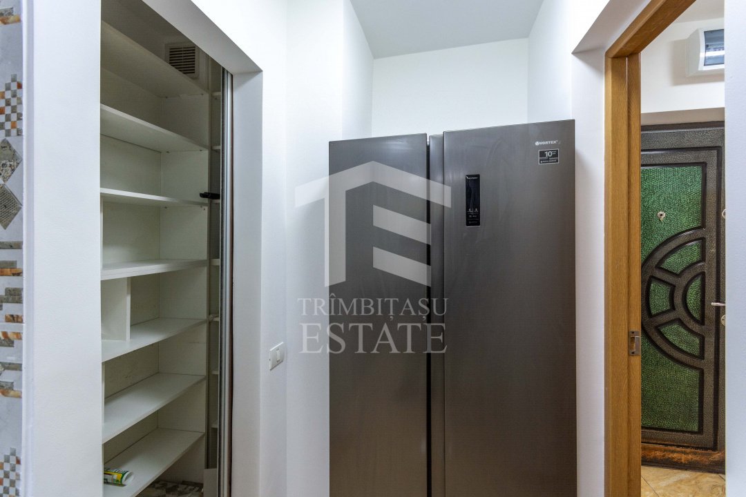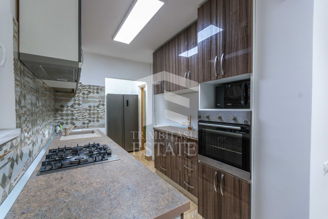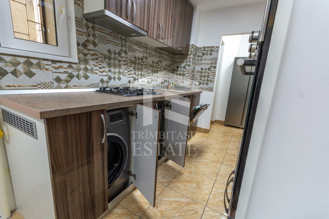 Si apartamentul, jur ca e si el "hyper"! Zugravit complet, Facut cap-coada, asa cum se face treaba buna. Mobilat, utilat, dotat, tot ce trebuie!  Electocasnicele? Moderne si din belsug: masina de spalat rufe dar si de spalat vase, uscator de rufe, cuptor cu microunde, plita pe gaz, cuptor de facut cozonaci de Craciun electric, aer conditionat de 24.000 BTU(daca vrei sa faci om de  zapada in casa vara, faci!).