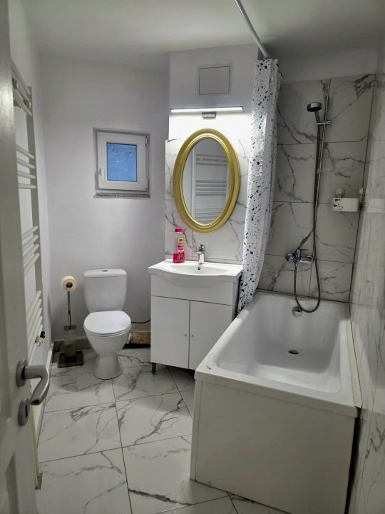 Apartamentul este complet mobilat și utilat, toate elementele fiind noi, pregătite pentru prima închiriere. Spațiul a fost amenajat cu atenție la detalii, astfel încât să ofere un ambient curat, aerisit și funcțional.
