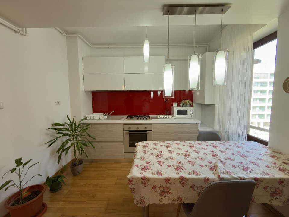 Vă propunem spre închiriere un apartament modern cu 2 camere, situat în zona Tomis Nord – Euromaterna, la etajul 3 din 6, într-un imobil bine întreținut.