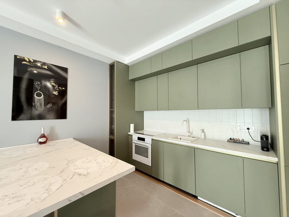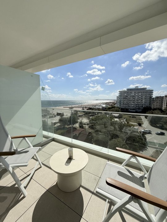 Apartamentul dispune de două terase generoase, cu vedere superbă atât către mare, cât și către lac, oferind un cadru ideal pentru relaxare. În plus, sunt incluse două locuri de parcare proprii.