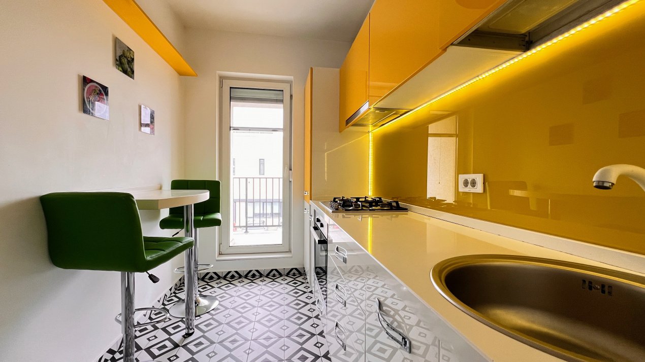 Locuința are o suprafață utilă generoasă de 46 mp, la care se adaugă un balcon de 6 mp, cu vedere spre miazăzi, ideal pentru lumină naturală pe tot parcursul zilei.