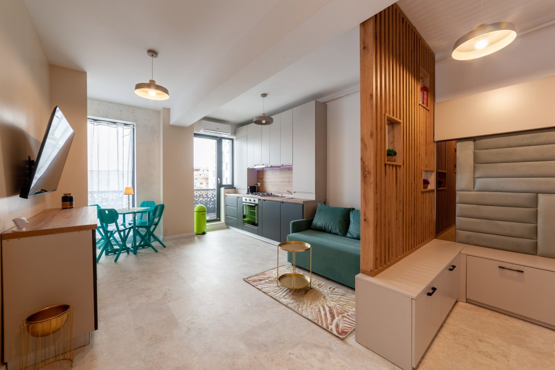 Un apartament cu 2 camere amenajat cu atentie la fiecare detaliu, unde totul este nou si la prima utilizare.
