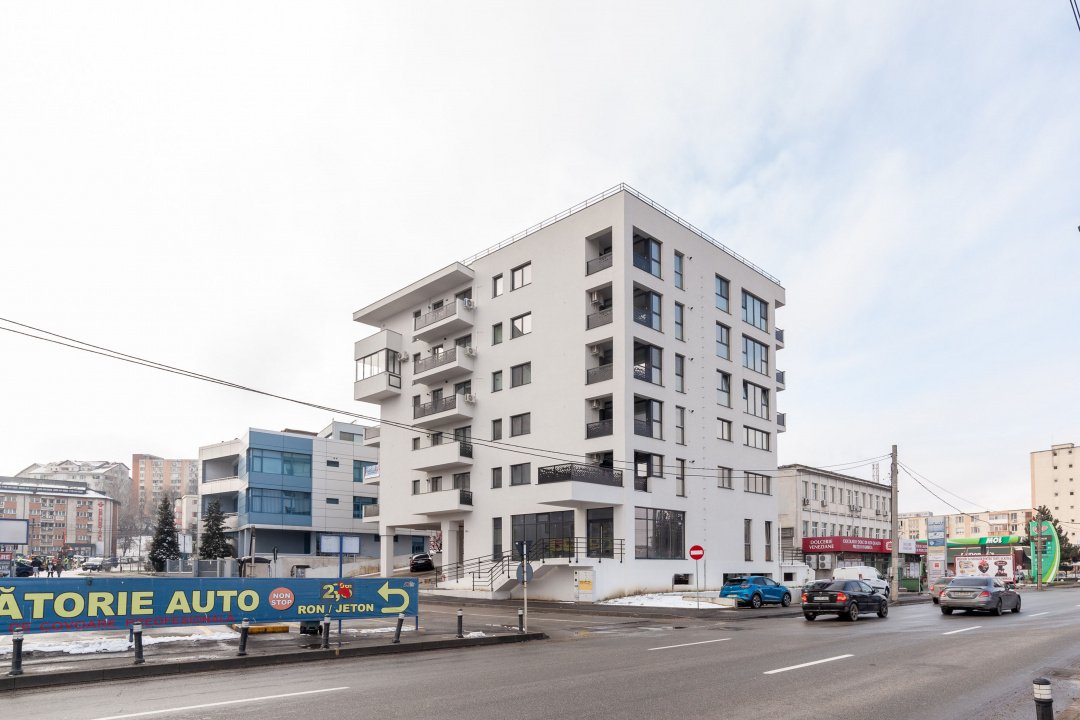 Este situat in zona Fratii Golesti – McDonald’s Gara, intr-un bloc nou (2025) cu loc de parcare inclus.
