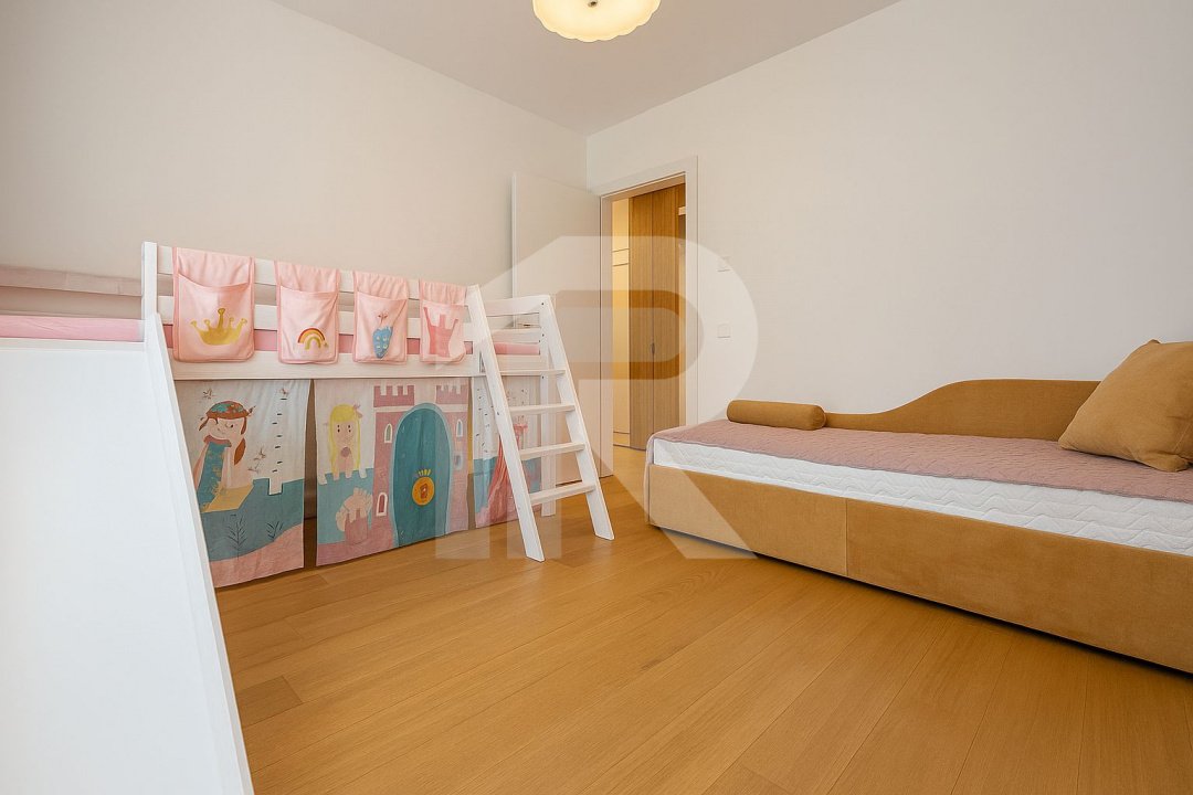 Acest apartament spațios de 3 camere, situat într-una dintre cele mai verzi și liniștite zone ale capitalei – Cartierul Greenfield Residence, îmbină perfect confortul urban cu apropierea de natură.Proprietatea este amplasată într-un bloc modern cu 9 etaje, aflat chiar la marginea pădurii, beneficiind de o priveliște superbă și intimitate deplină.Apartamentul dispune de un balcon închis cu sticlă securizată, ideal pentru relaxare pe tot parcursul anului, și oferă finisaje de calitate superioară, mobilier modern și electrocasnice premium.