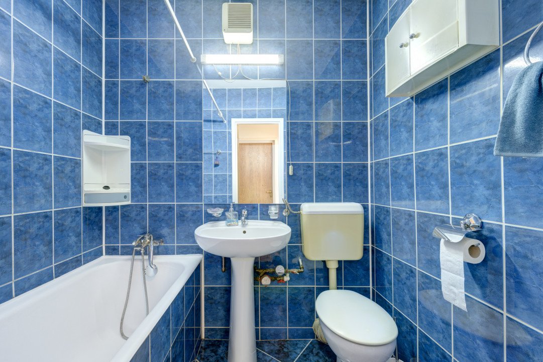 Apartamentul are un singur grup sanitar, echipat cu toate obiectele sanitare si cada. Holul de la intrare este generos si amenajat cu un dressing.