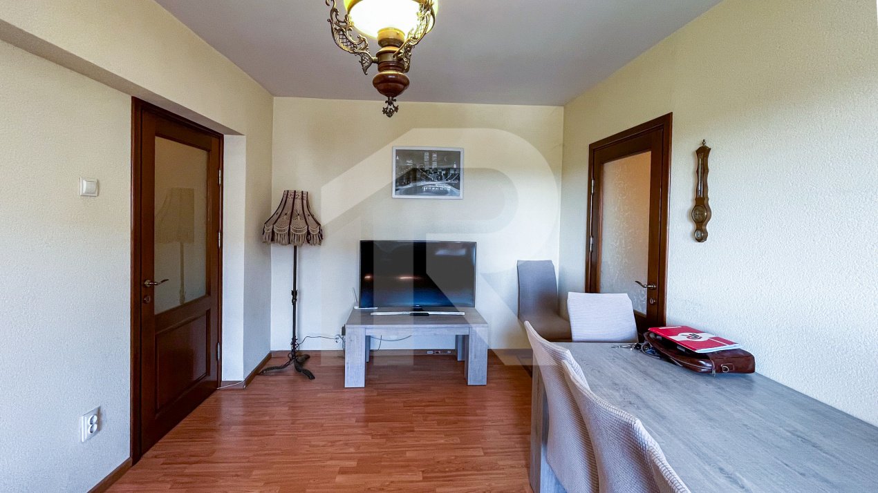 Apartamentul dispune de 3 camere (semi-decomandat) cu spațiu generos și funcțional, situat la etajul 5 din 7 cu vedere frumoasă. Are 2 băi pentru confort maxim și este complet utilat și mobilat.
