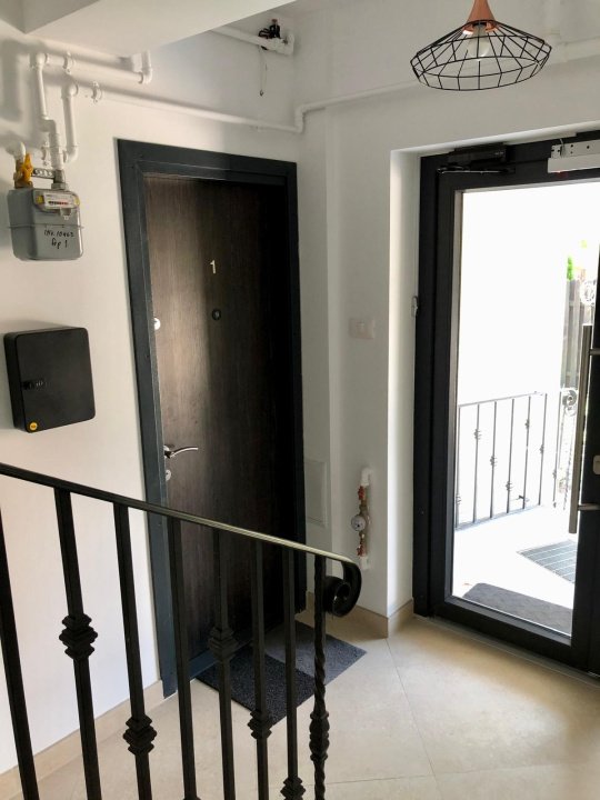 Imobilul beneficiaza de curte imprejmuita, oferind un plus de siguranta si intimitate, iar apartamentul beneficiaza de o vedere deschisa, fara alte cladiri aproape, in fata.