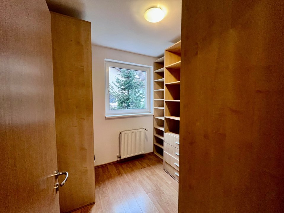 Kronhouse Real Estate va propune spre inchiriere un apartament 4 camere, la casa in Complexul Green Valley, in apropierea Lacului Noua si la cateva minute de gradina zoologica. Locuinta are o suprafata aproximativa de 135 mp, cu 3 bai si o gradina tip terasa de aproximativ 30 mp. Imobilul este structurat astfel :P+1+M: La parter avem: bucataria open-space cu livingul, wc de serviciu, debara si gradina tip terasa. La nivelul 1 avem: 2 dormitoare, dressing si baie cu cada. La mansarda avem: dormitor, dressing si baie cu dus. Apartamentul este mobilat si utilat complet. Nu se accepta cu animale de companie in locatie, fara studenti. Proprietatea dispune de 1 loc de parcare in cadrul complexului. Utilitatile nu sunt incluse in chirie. La chiria afisata se adauga T.V.A de 21%. Conditii de inchiriere: o luna in avans, o garantie de 900 EURO si comisionul standard al agentiei de 50%. Pentru detalii suplimentare, nu ezitati sa ne contactati. 0726 684 207.