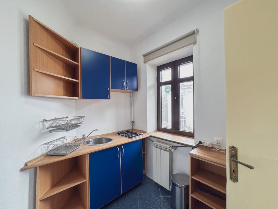 Bucătăria utilată și baia compactă oferă confortul necesar, iar curtea comună adaugă un spațiu rar întâlnit în centrul orașului, perfect pentru momente de respiro sau mici evenimente.