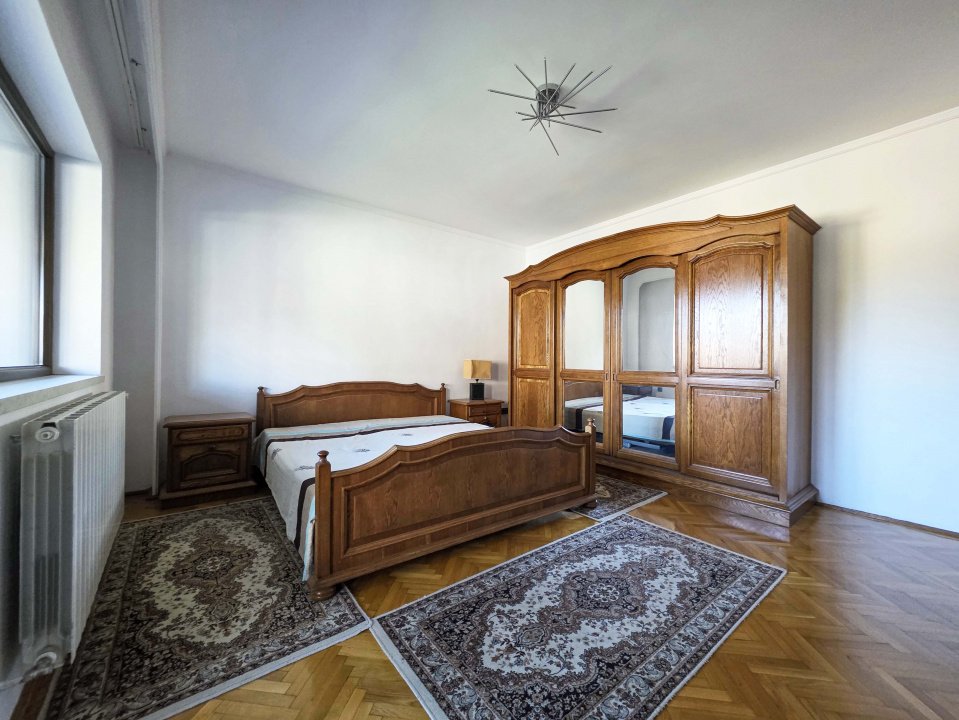 Apartamentul este complet mobilat si utilat, pregatit pentru a oferi confortul unei familii numeroase sau pentru a fi utilizat ca sediu de firma. Se inchiriaza pe termen lung, la pretul de 1000 euro/luna.