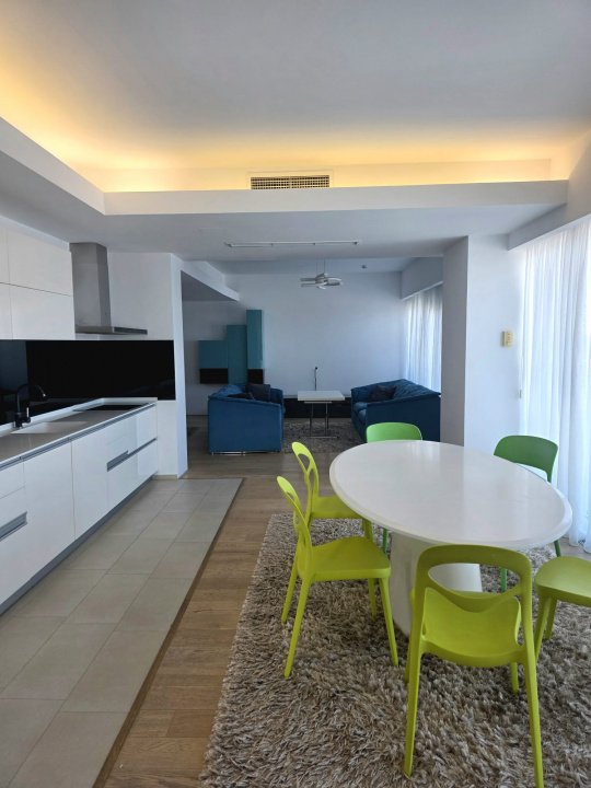 Apartamentul închiriază mobilat și utilat complet si dispune de loc de parcare subteran, un avantaj esențial pentru confortul urban.