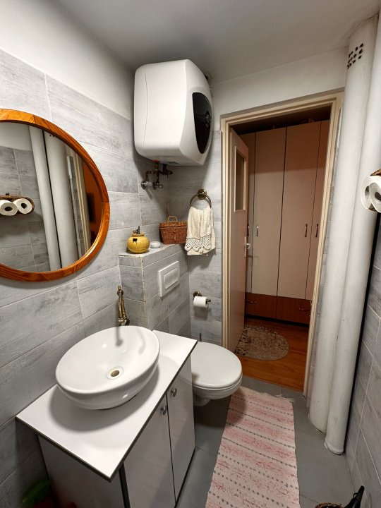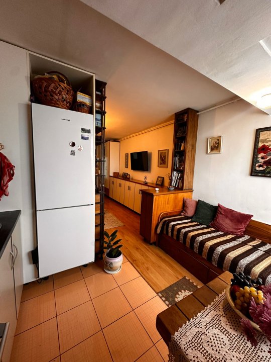 Garsoniera se vinde partial mobilata, ceea ce iti permite sa te muti imediat sau sa o pregatesti rapid pentru inchiriere.