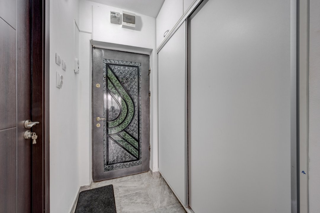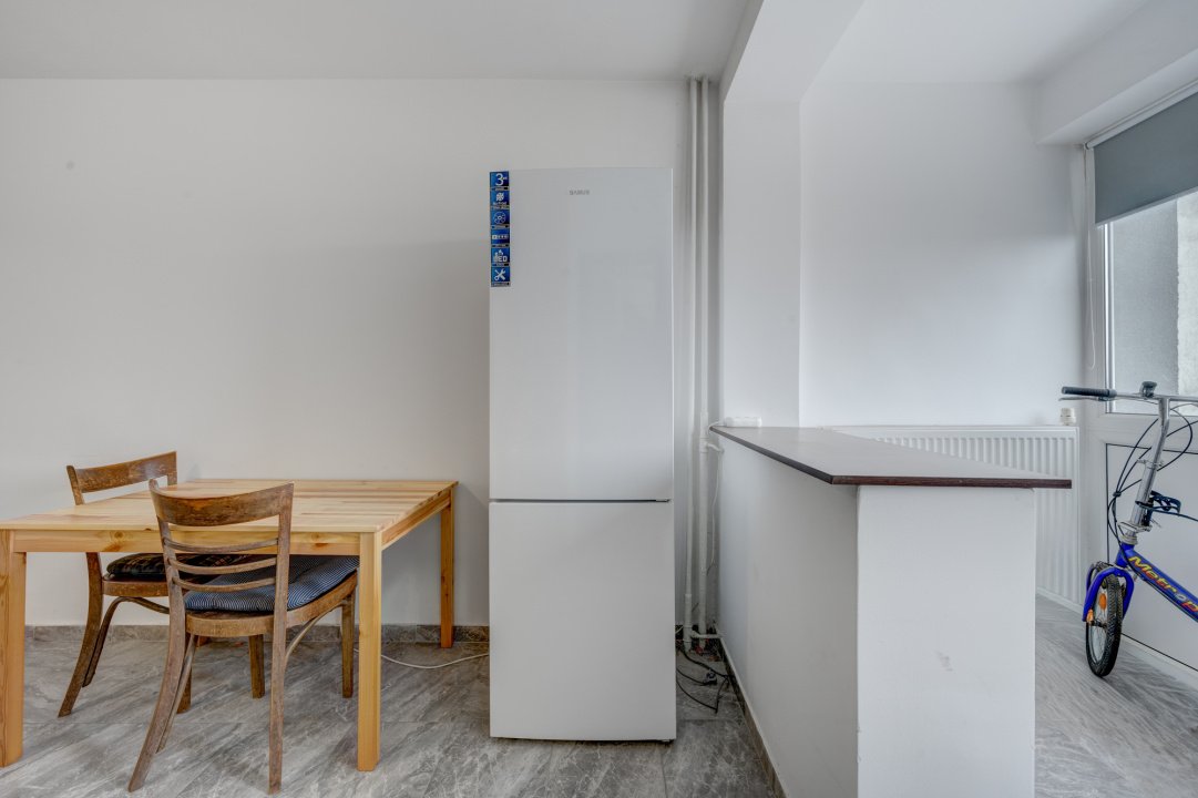 In 2020, garsoniera a fost renovata complet: schimbat instalatie electrica, instalatie sanitara, amenajata baia pentru a fi mai spatioasa. Mobilierul din bucatarie, dulapul mare de pe holul de la intrare, canapeaua  extensibila din camera - toate au fost facute pe comanda, pentru a se potrivi cat mai bine in casa. Camera are aproape 18 mp si daca ai nevoie sa iti mai aduci mobilier, sa iti amenajezi un birou, ai spatiu suficient. Pentru ca planurile proprietarilor s-au schimbat dupa renovare, garsoniera a fost foarte putin locuita in ultimii 5 ani.