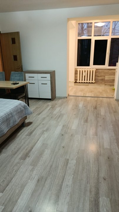 Incă de la intrare, spatiul este gandit practic: balconul a fost transformat in bucătărie, optimizand fiecare metru util si păstrand camera principală liberă. Astfel, aceasta poate fi amenajată cu usurintă ca dormitor confortabil sau living primitor, in functie de nevoile viitorului proprietar.