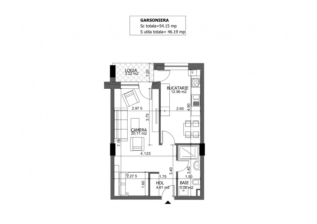 Detalii apartament: suprafata utila total de 46,19mp din care 3,22mp balconul.