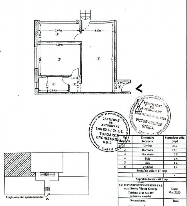 Apartamentul se afla la parterul unui imobil construit in 2020, are o suprafata de 47 mp utili si beneficiaza de o curte proprie de 50 mp.