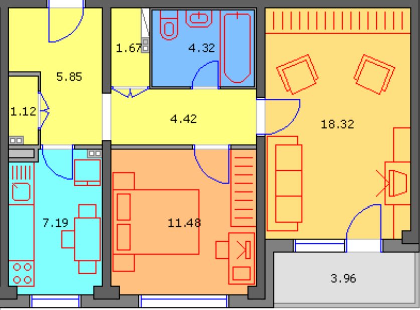 • 2 camere, 57,2 m² total, Etaj 6/10, într-un bloc cu lift