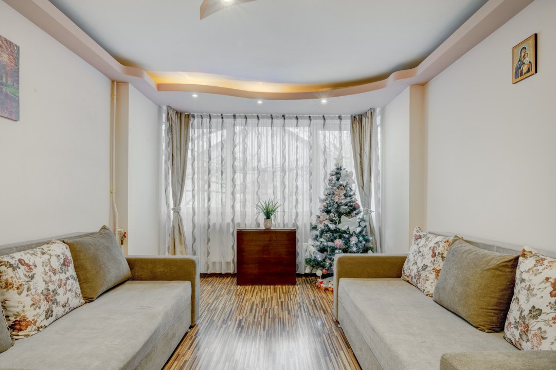 Apartamentul este in stare foarte buna si a fost zugravit recent. Instalatia electrica este schimbata integral, caloriferele au fost si ele inlocuite si toate instalatiile sanitare. Toate ferestrele au tamplarie PVC cu geam termopan, toate usile interioare au fost schimbate iar pardoselile sunt placate cu parchet laminat in camere si gresie( hol, baie si bucatarie). Baia este singura care nu este renovata recent.