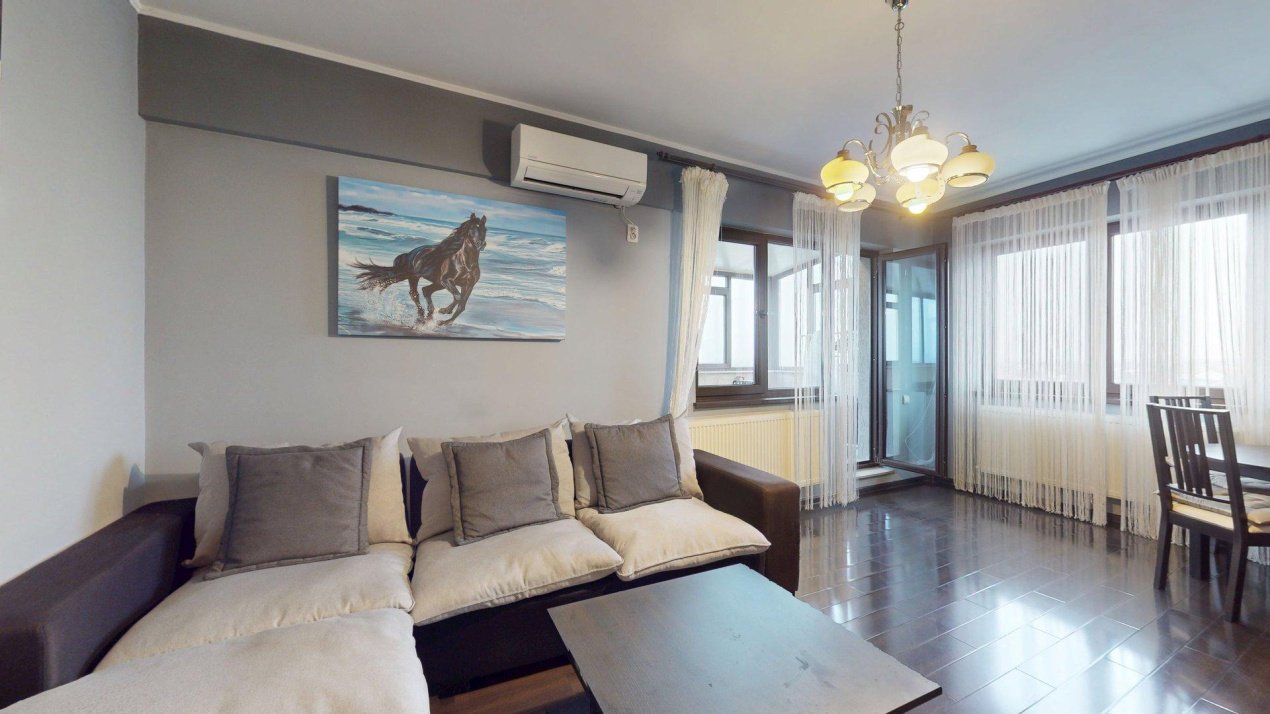 Vă prezentăm spre vânzare, un apartament compus din două camere și terasă panoramică, situat într-un imobil cu 6 niveluri, dintre care, ultimele două, retrase, finalizat în anul 2013, modernizat, echipat, utilat și mobilat recent, localizat în Șoseaua Chitilei. Apartamentul se vinde astfel cum apare în prezentare, complet mobilat și echipat, gata pentru a fi locuit imediat.