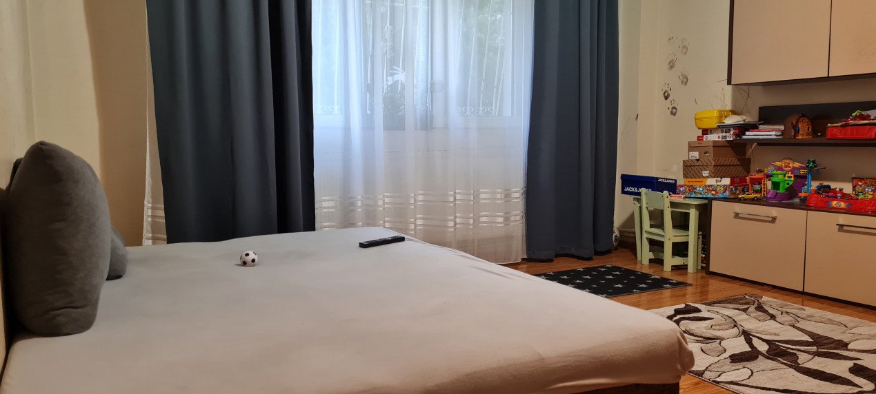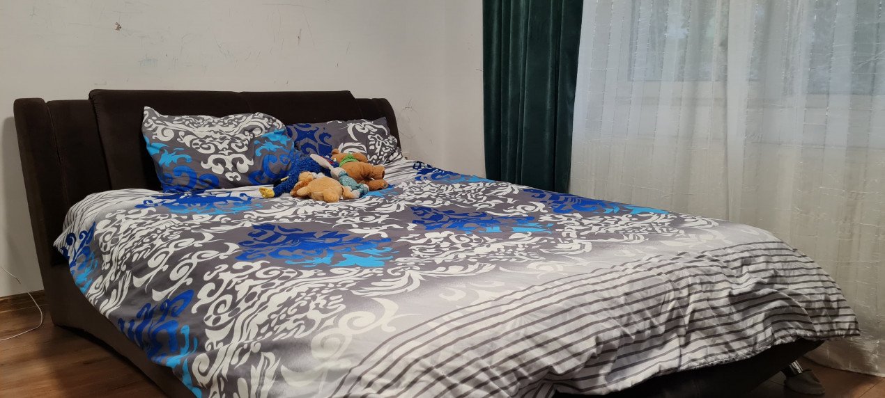 Dormitorul: Este generos, cu un pat dublu, dulapuri încorporate și o fereastră mare. Ideal pentru relaxare și odihna.