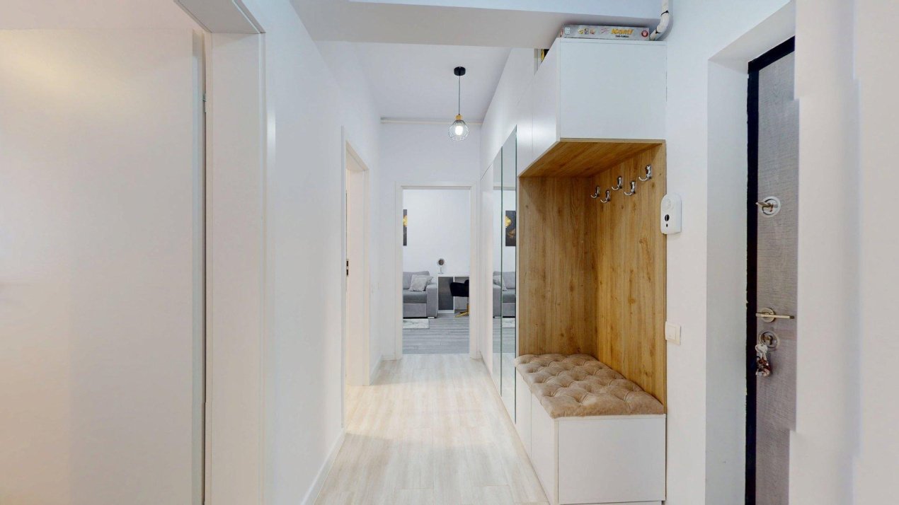 Apartamentul beneficiază de o compartimentare inteligentă, oferind o circulație fluidă și zone clar definite pentru relaxare și activități zilnice: