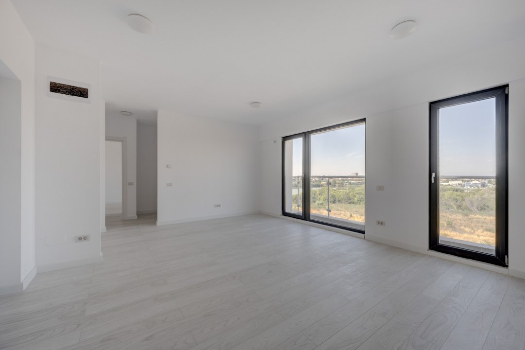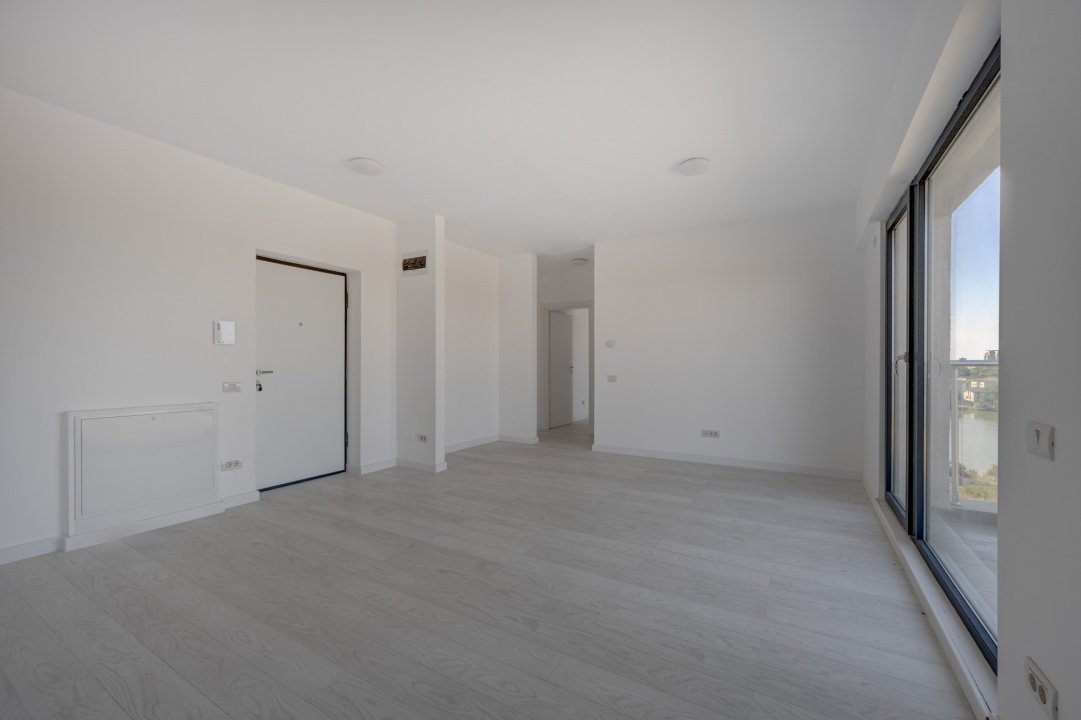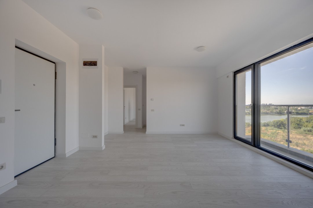 Apartamentul este semidecomandat si, fie ca esti in zona de zi sau in dormitor, privelistea libera spre lac iti aduce incantare pe tot parcursul zilei.