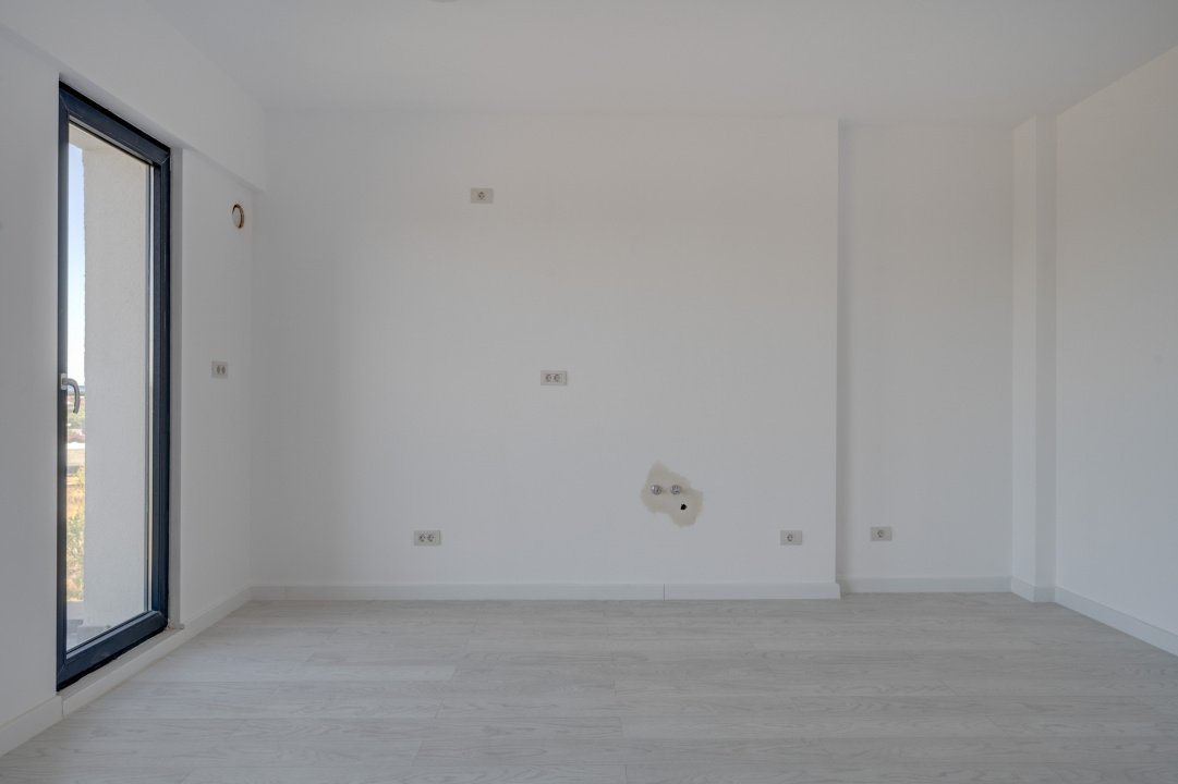 Camera de zi si bucataria formeaza un spatiu deschis de 26 mp, iar dormitorul are 14 mp. Langa baie deja este amenjat spatiul pentru masina de spalat. Baia are atat geam cat si ventilatie.