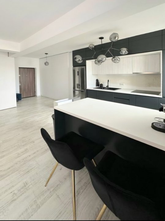 Locuința se vinde mobilată modern și utilată complet — electrocasnice de calitate (inclusiv mașină de spălat LG + uscător Beko, plită Electrolux, frigidere LG), aer condiționat, mobilier executat cu atenție și detalii de design interior.