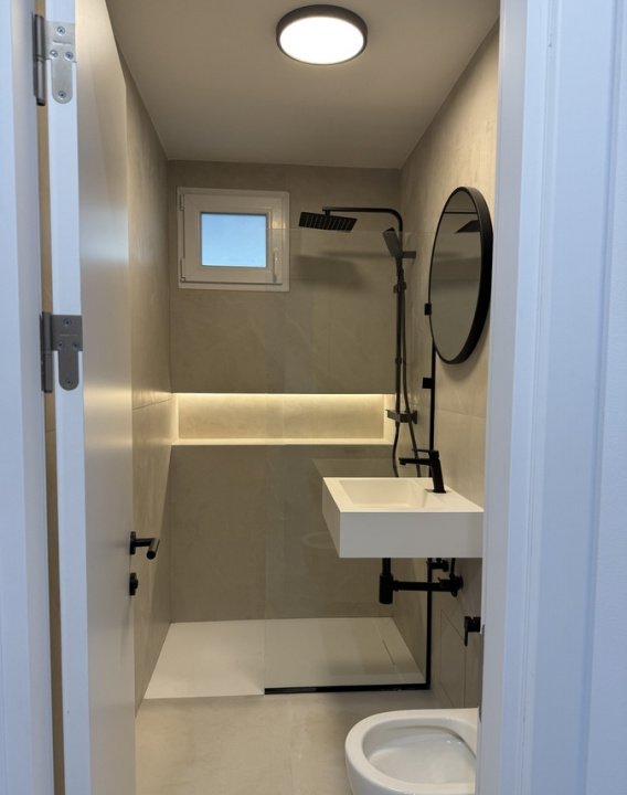 Apartamentul este semidecomandat și a fost complet renovat, beneficiind de încălzire electrică în pardoseală pe toată suprafața, boiler de 50 L pentru baie, precum și instalații electrice și sanitare înlocuite integral. Totodată, a fost realizată marirea de putere pe rețelele electrice, cu schimbarea coloanei de cabluri până la panoul de siguranțe al scării. Ferestrele sunt echipate cu tâmplărie termopan Salamander în dormitor și baie, iar restul au fost schimbate cu profil Gealan odată cu reabilitarea blocului.