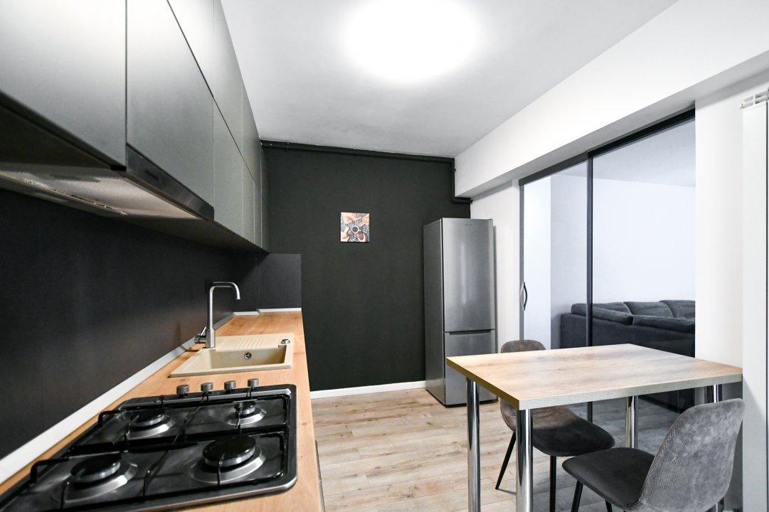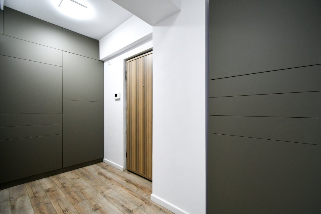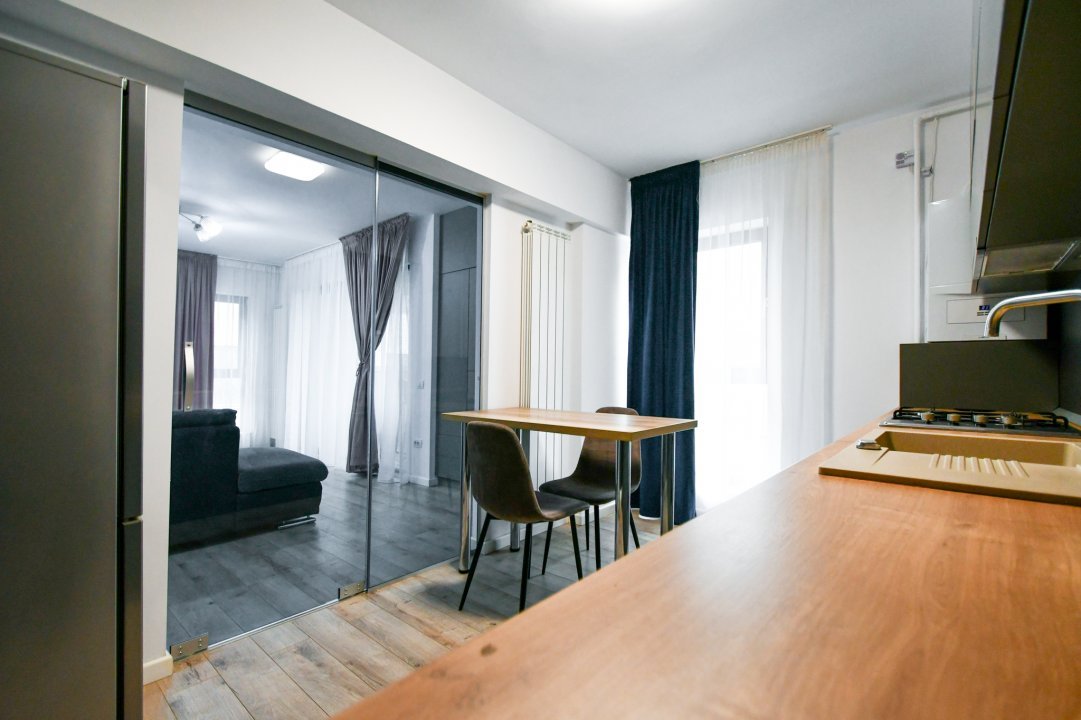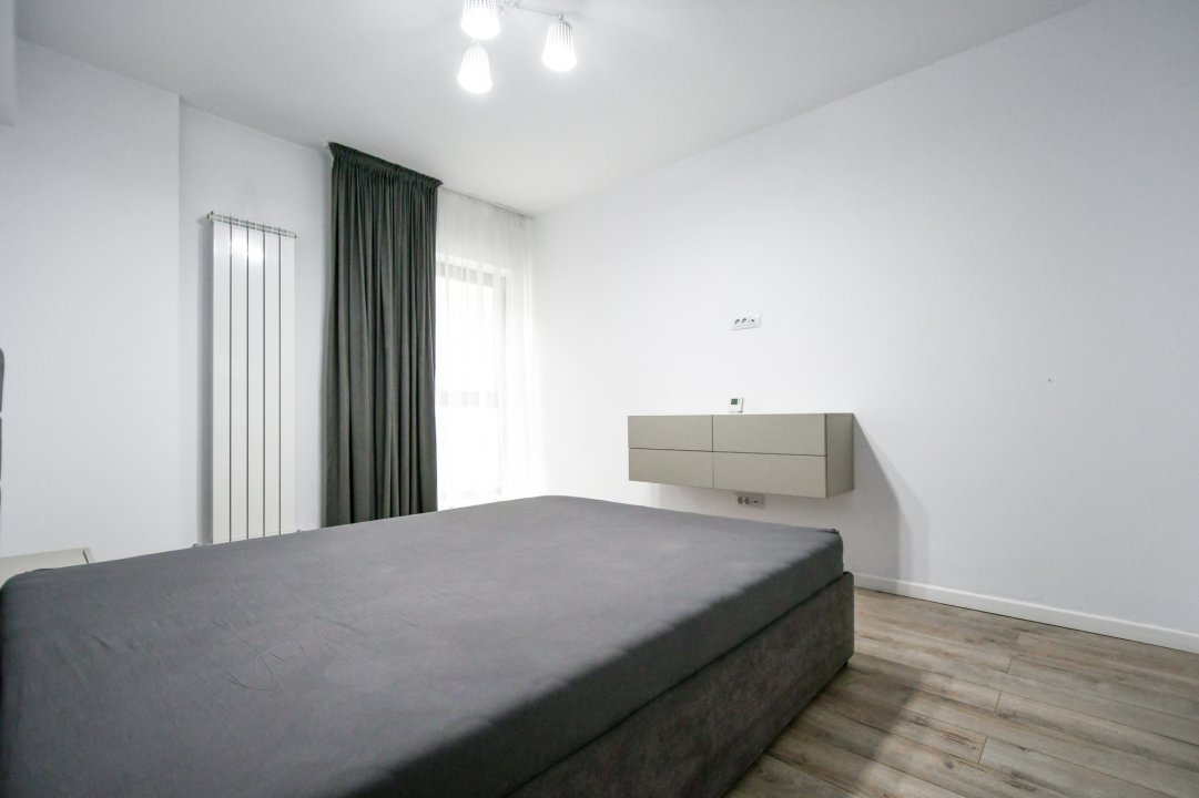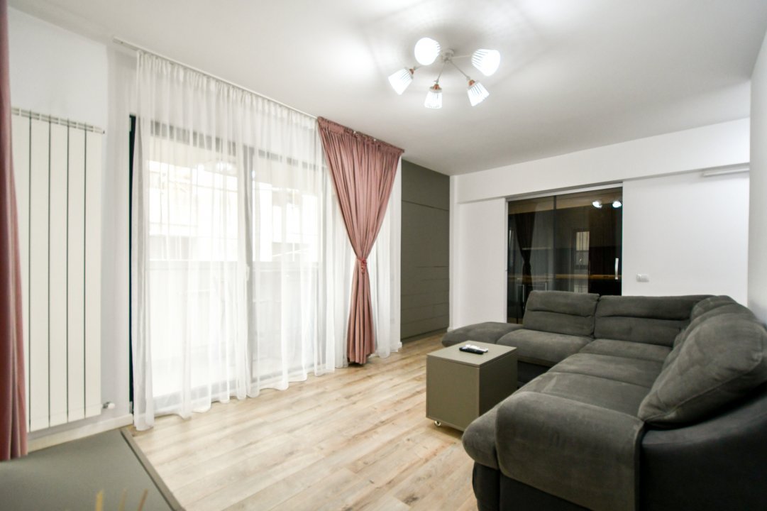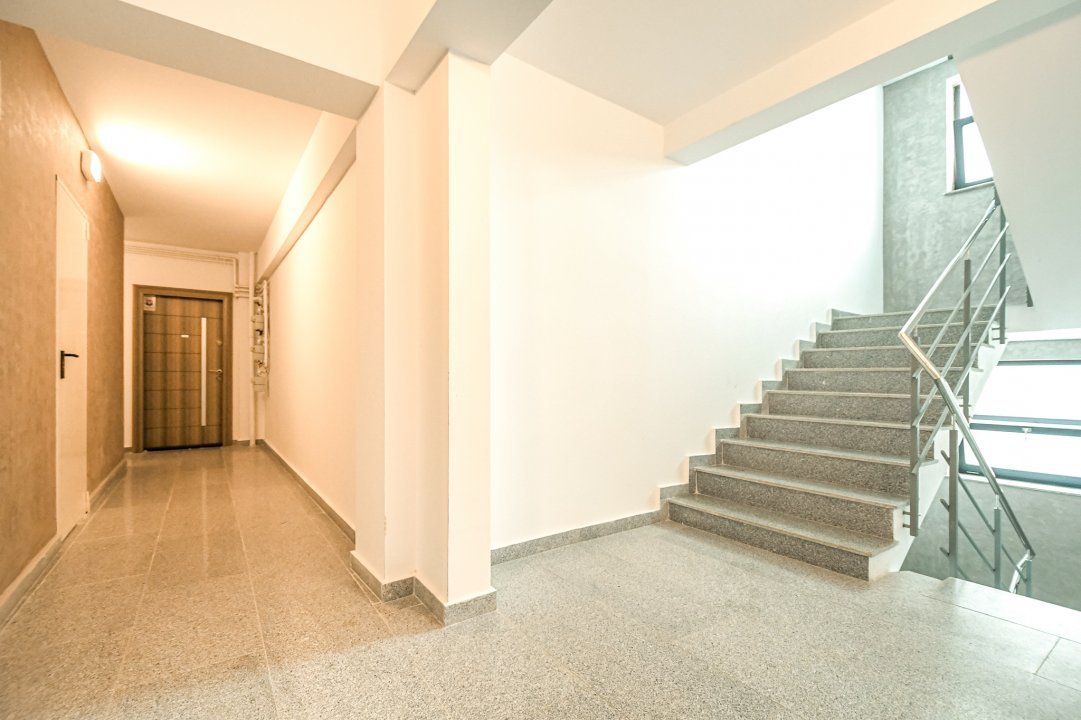 Apartamentul are pozitionare cardinala Sud-Est, se preda mobilat-utilat conform fotografii (daca cumparatorul doreste) si dispune de urmatoarele dotari si finisaje: gresie, faianta, parchet laminat, usi interior celulare furniruite, usa metalica la intrare, usa culisanta sticla securizata fumurie la bucatarie, balcon inchis cu sticla securizata culisanta, instalatii electrice cupru asistate de tablou cu sigurante automate elaborat pe fiecare incapere si siguranta cu diferential pentru baie, obiecte sanitare de la diverse firme de prestigiu, centrala termica pe gaze Vaillant 24 KW in condensare cu termostat de ambient - stabilizator de tensiune si distribuitor de caldura, calorifere ornamentale aluminiu si portprosop in baie, aparat de aer conditionat Tesla, acces securizat cu videointerfon, televizor LCD, combina frigorifica, cuptor electric incorporat, plita pe gaz cu hota retractabila, masina de spalat rufe, dressing de hol, pantofar hol, mobilier de dormitor cu pat (cu lada depozitare), comoda TV si noptiere, mobilier de bucatarie complet cu masa si scaune, mobilier living cu canapea extensibila, dulap depozitare, comoda si masa cafea cu zona depozitare, perdele si draperii, corpuri de iluminat integral, boxa depozitare langa usa apartamentului si loc de parcare proprietate in parcarea exterioara. Blocul este prevazut cu sistem de supraveghere video pe fiecare etaj si exterior, iar statia de autobuz se afla la numai 20 m de imobil.