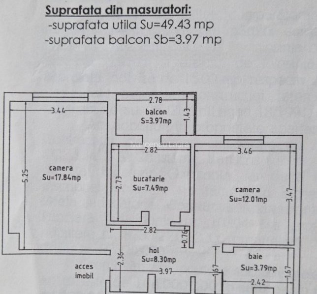 Proprietatea are o suprafață totală de 53 mp, din care 49,43 mp utili și un balcon de 3,97 mp, închis cu tâmplărie termopan, ideal pentru a fi folosit ca spațiu suplimentar.
