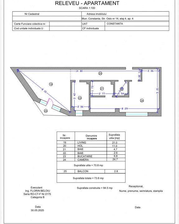 70,8mp + 2,8 mp balcon