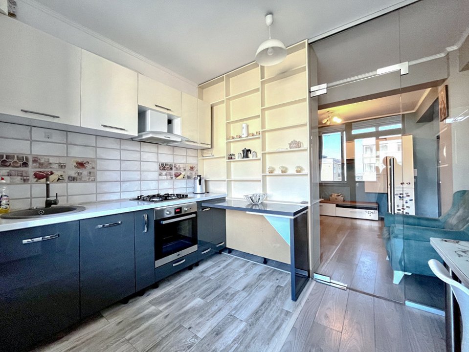 Bucătărie mobilată și utilată: plită, cuptor, hotă, frigider (electrocasnice incluse în preț)