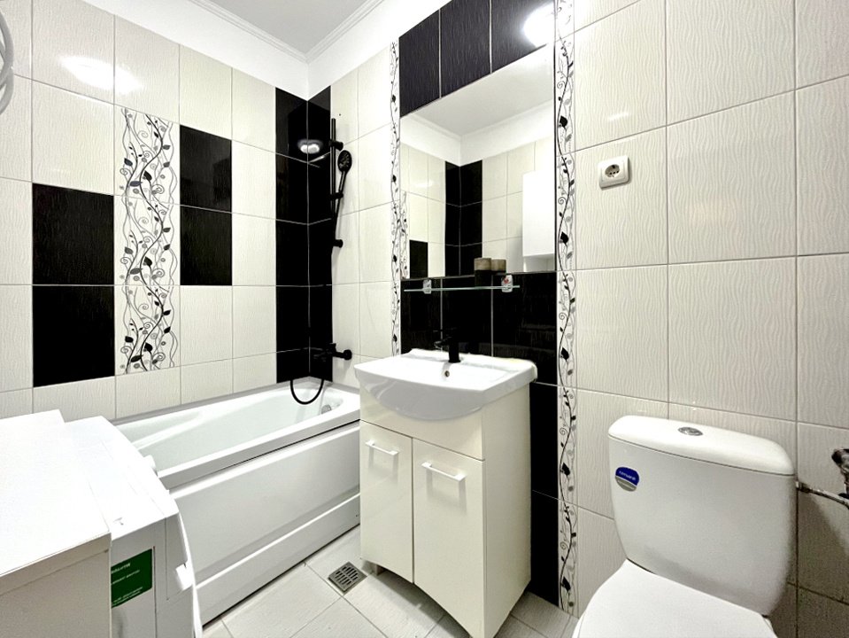Baie complet echipată: obiecte sanitare moderne, cabină de duș / cadă, accesorii incluse